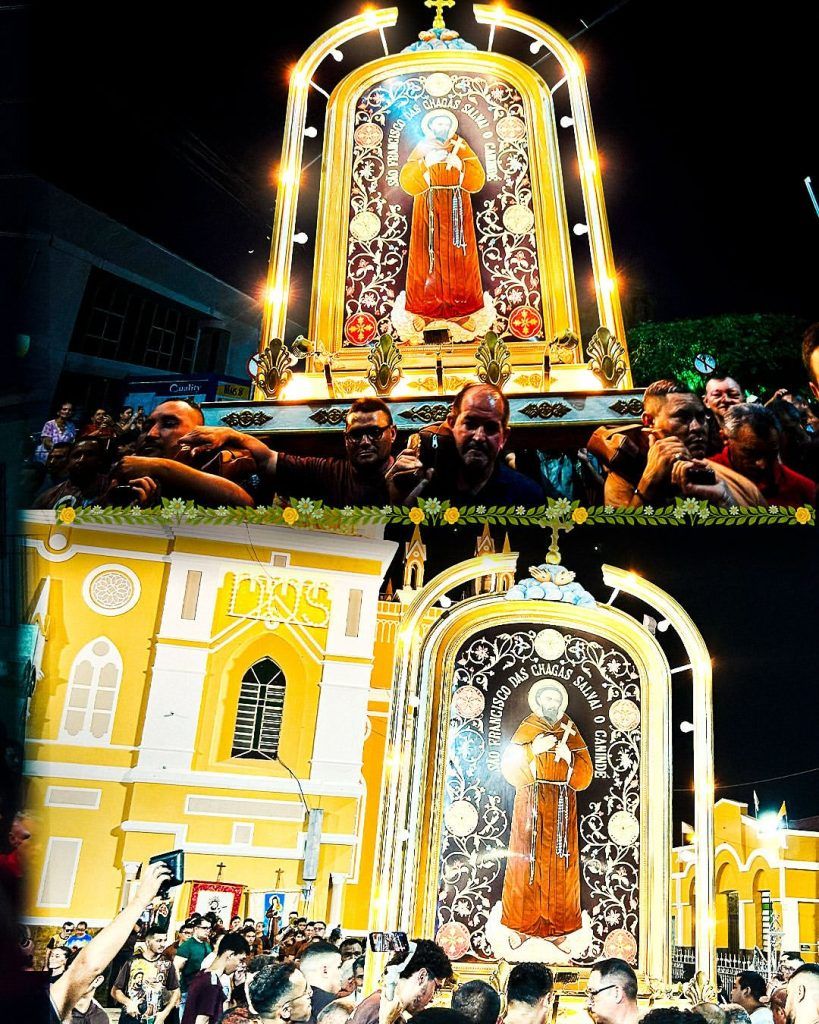 Na noite da última quarta-feira (24), as ruas se encheram de emoção com a passagem do Painel de nosso padroeiro, levando esperança, bênçãos e a alegria de celebrar São Francisco das Chagas. Um momento histórico de fé e devoção!
