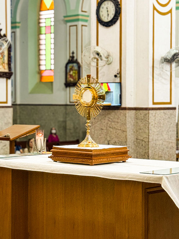 Durante a Missa, esse mistério se renova no altar. E fora da celebração, a Igreja nos convida a permanecer em oração diante do Santíssimo exposto ou reservado no tabernáculo. É a mesma presença do Senhor que alimenta, consola e fortalece.