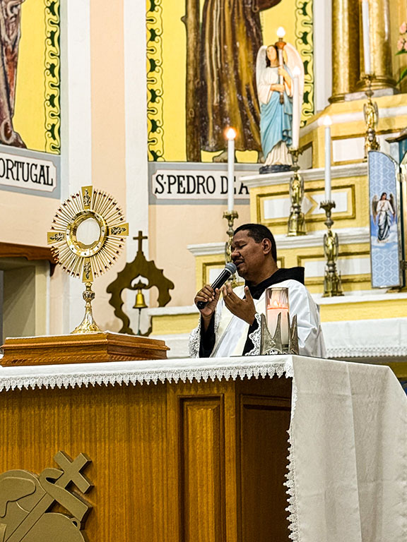 “Adorarás o Senhor teu Deus e só a Ele prestarás culto” (Lc 4,8). Ao nos colocarmos diante do Santíssimo Sacramento, reconhecemos que Ele é o centro de nossa vida. É um gesto de fé, de humildade e de entrega total à vontade de Deus. A adoração é o momento em que o coração se cala, o olhar se volta para o Senhor, e a alma se abre para escutar a voz d’Aquele que habita em silêncio e majestade.