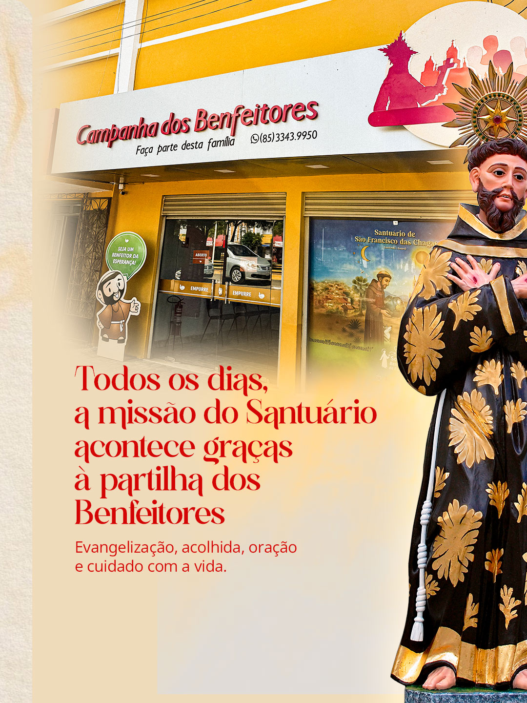 A Campanha dos Benfeitores é uma das principais expressões de corresponsabilidade e comunhão no Santuário de São Francisco das Chagas de Canindé. Por meio da partilha generosa de tantas pessoas, a missão evangelizadora do Santuário acontece diariamente, alcançando romeiros, fiéis e a comunidade local.