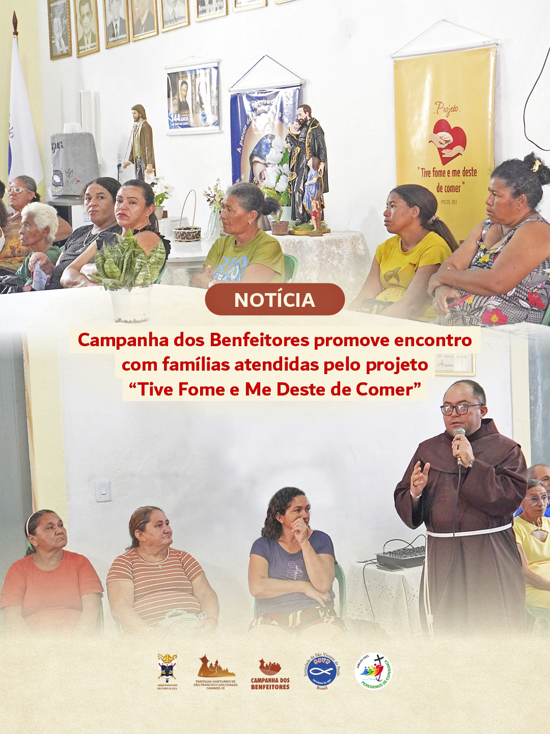 Na manhã da terça-feira (18), a Campanha dos Benfeitores do Santuário de São Francisco das Chagas promoveu um encontro especial com as famílias atendidas pelo projeto “Tive Fome e Me Deste de Comer”, realizado na Capela de São Vicente de Paulo, importante parceira nessa missão de solidariedade.