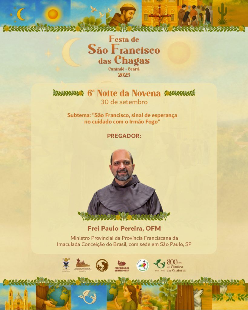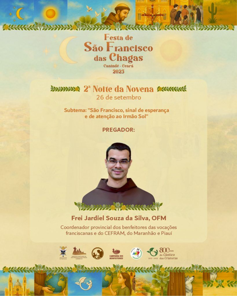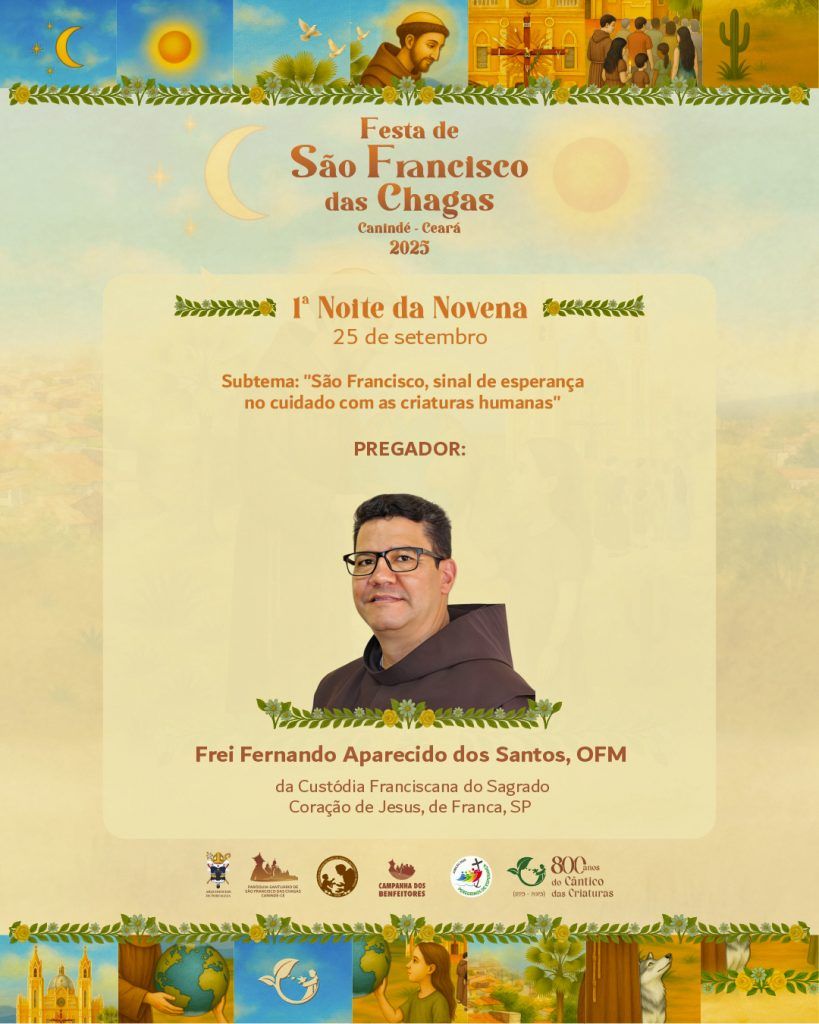 Cada noite da Novena de São Francisco das Chagas 2025 será um momento único de fé, partilha e anúncio da Palavra. Diversos pregadores estarão conosco, trazendo reflexões que nos ajudarão a viver com mais profundidade este tempo de graça.