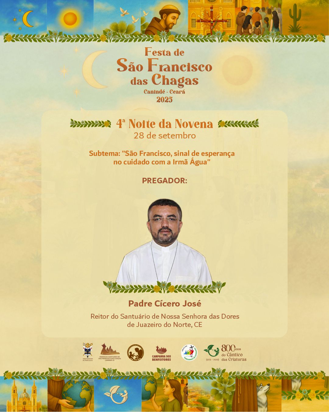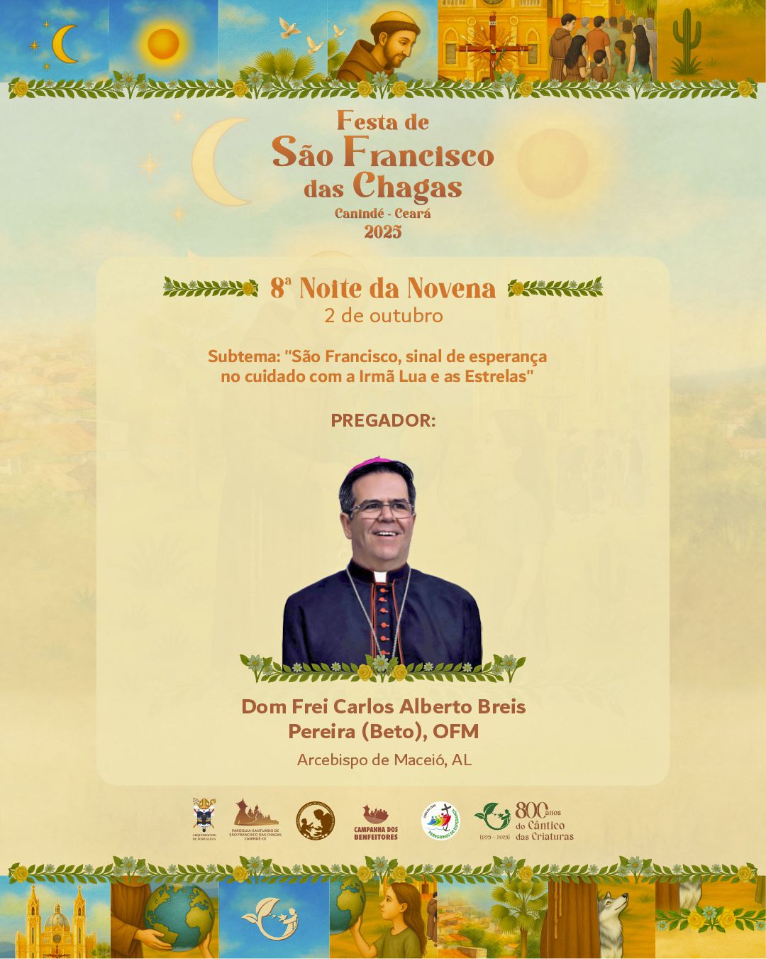 Cada noite da Novena de São Francisco das Chagas 2025 será um momento único de fé, partilha e anúncio da Palavra. Diversos pregadores estarão conosco, trazendo reflexões que nos ajudarão a viver com mais profundidade este tempo de graça.