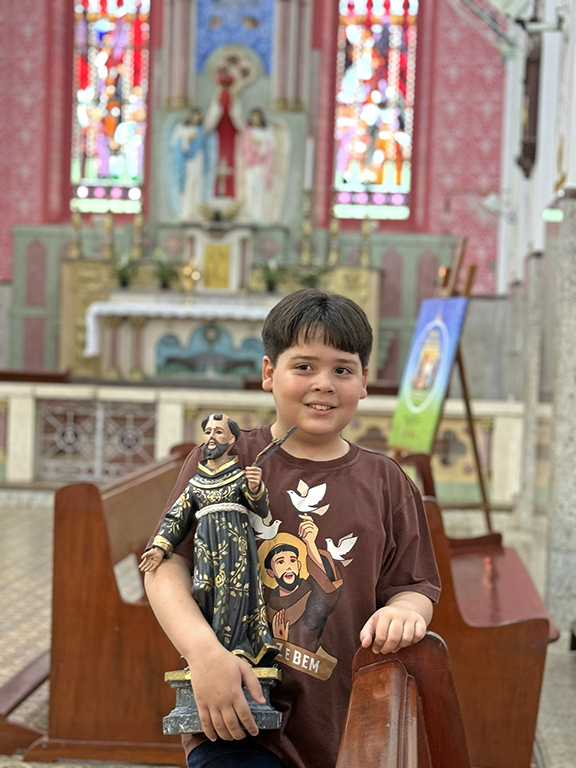 Entre estes números e esta devoção, encontramos o caso de Francisco Yuri, que antes mesmo de nascer já carregava o nome do padroeiro de Canindé, fruto da grande devoção de sua mãe, Loane Maria, a São Francisco das Chagas. Em entrevista à equipe de comunicação do Santuário, Loane contou que o dia do nascimento foi marcado por um sinal especial: ao chegar ao centro cirúrgico, surpreendeu-se ao ver toda a equipe médica vestida de marrom, cor pouco comum nesse ambiente, geralmente dominado por tons de verde, azul ou branco. Para ela, aquele momento foi um gesto providencial, um sinal do cuidado de São Francisco. E para completar essa ligação entre os dois Franciscos, o pequeno Yuri nasceu na véspera do dia de São Francisco de Assis.