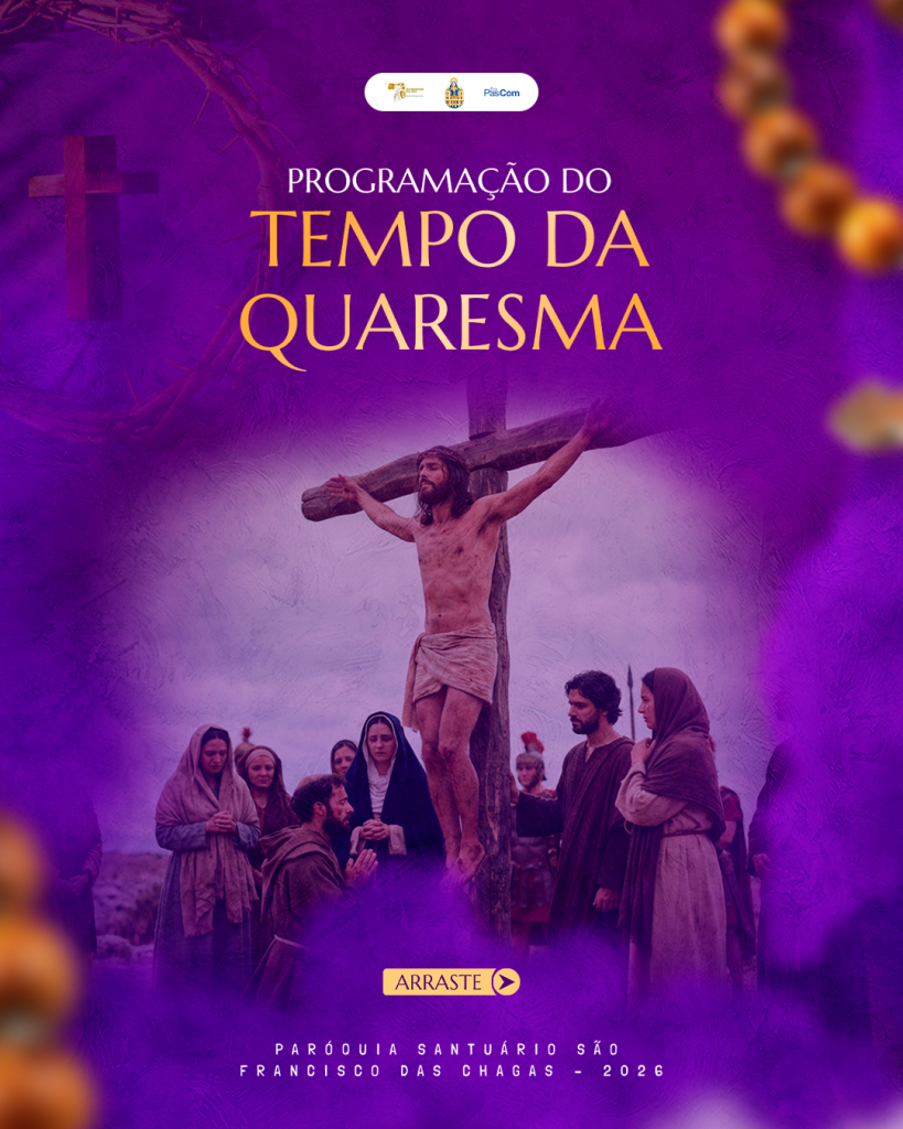 No último domingo, 1º de fevereiro, a Paróquia de São Francisco das Chagas apresentou oficialmente a programação da Quaresma e da Semana Santa, tempo forte da Igreja que nos conduz à celebração do Mistério central da fé cristã: a Paixão, Morte e Ressurreição de Nosso Senhor Jesus Cristo.