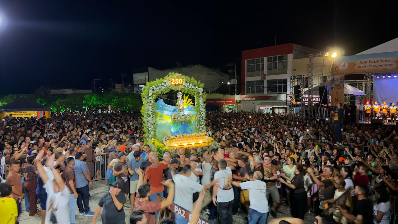 O ponto alto da celebração foi, como de costume, a tradicional procissão com a imagem de São Francisco das Chagas – que neste ano completa 250 anos de presença no Santuário. O cortejo percorreu as ruas de Canindé em um clima de fé, emoção e profunda devoção popular. Durante o percurso, o refrão “Que santo milagroso, que santo milagroso, São Francisco é de fato um santo milagroso” ecoava nas vozes do povo, expressando o amor e a confiança dos devotos.