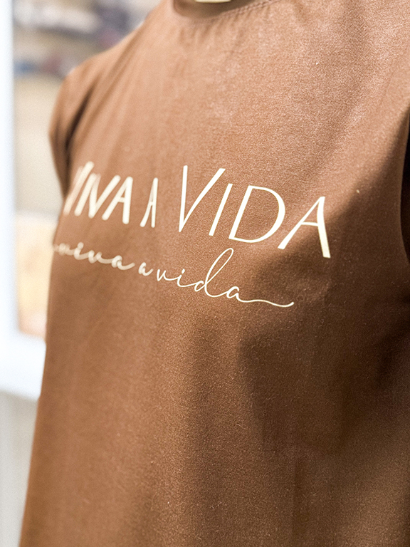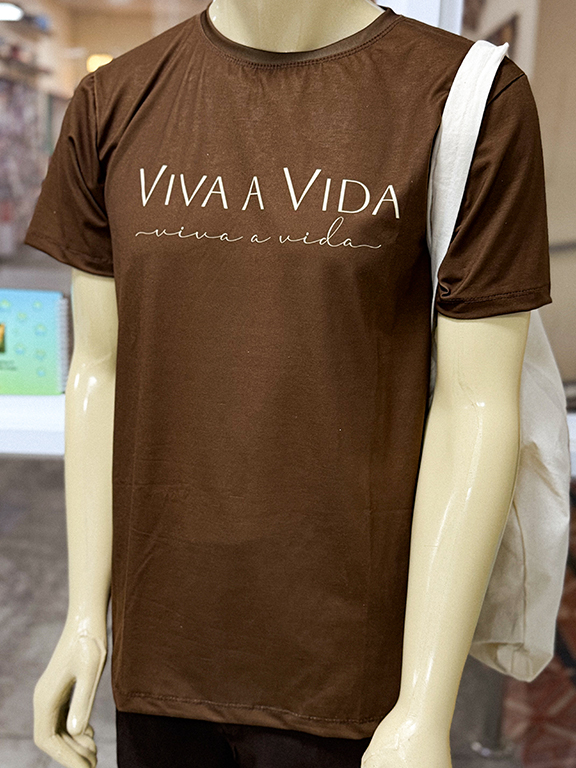 Entre os itens disponíveis estão camiseta solidária, bolsa ecobag, bloco de notas e canetas, produzidos especialmente para apoiar a manutenção e melhoria da quadra poliesportiva, espaço dedicado à convivência, inclusão social e dignidade humana.