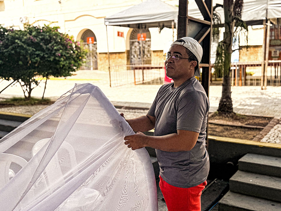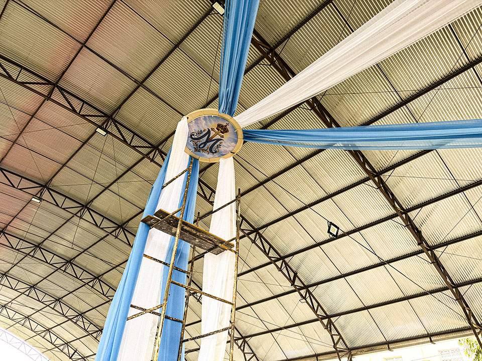 Com traços de simplicidade e profundo sentido mariano, o espaço será preparado para receber celebrações, momentos de oração e a presença constante dos romeiros e devotos que visitam o Santuário durante a festa. O trabalho é realizado com dedicação e carinho, como expressão da fé do povo de Deus e do empenho do Santuário em bem acolher todos os que chegam em romaria.