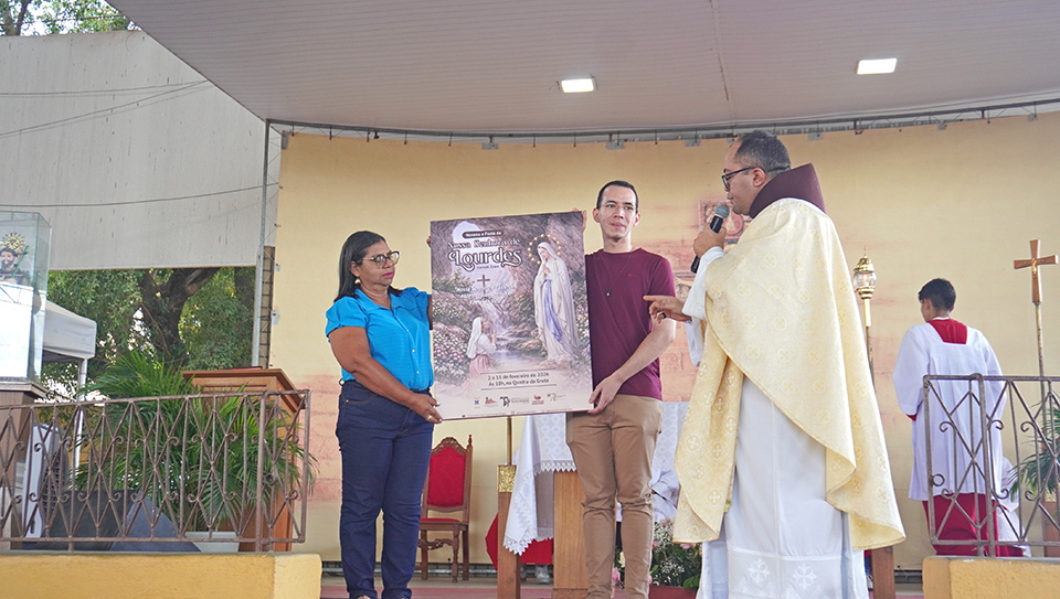 O Santuário de São Francisco das Chagas, em Canindé (CE), apresentou oficialmente o cartaz e o tema da Festa de Nossa Senhora de Lourdes 2026 durante a Santa Missa das 9h deste domingo, 11 de janeiro. A celebração aconteceu em um dia especialmente significativo para a Igreja: a Festa do Batismo do Senhor e o dia votivo dedicado a Nossa Senhora de Lourdes no Santuário.