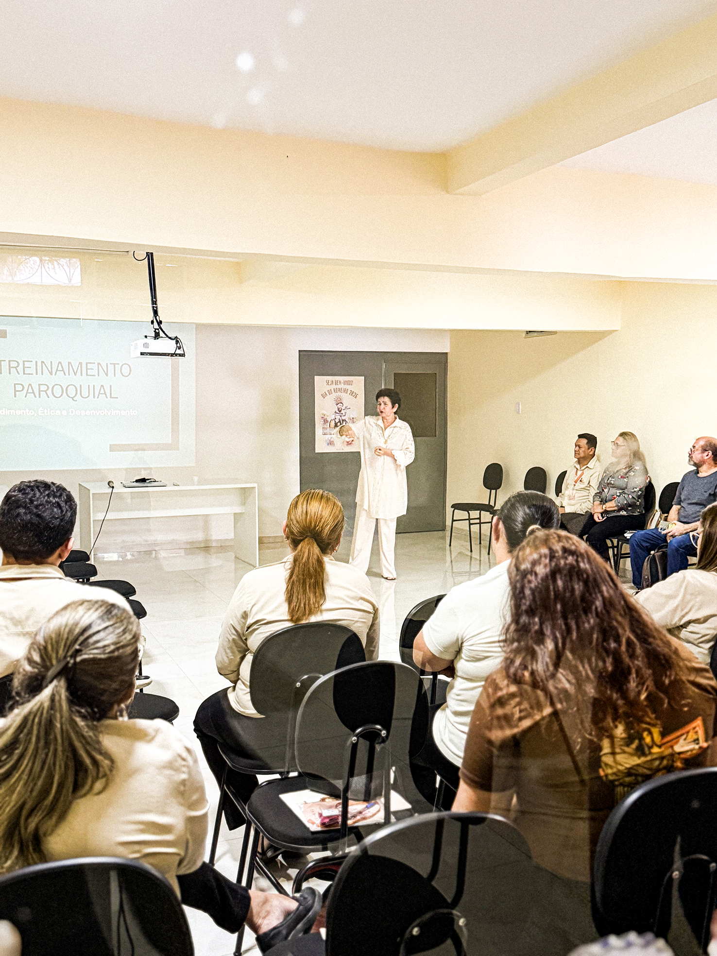 A formação busca contribuir para o aperfeiçoamento humano e profissional dos participantes, com foco na melhoria do atendimento, da acolhida e da organização dos serviços prestados no contexto paroquial e pastoral.