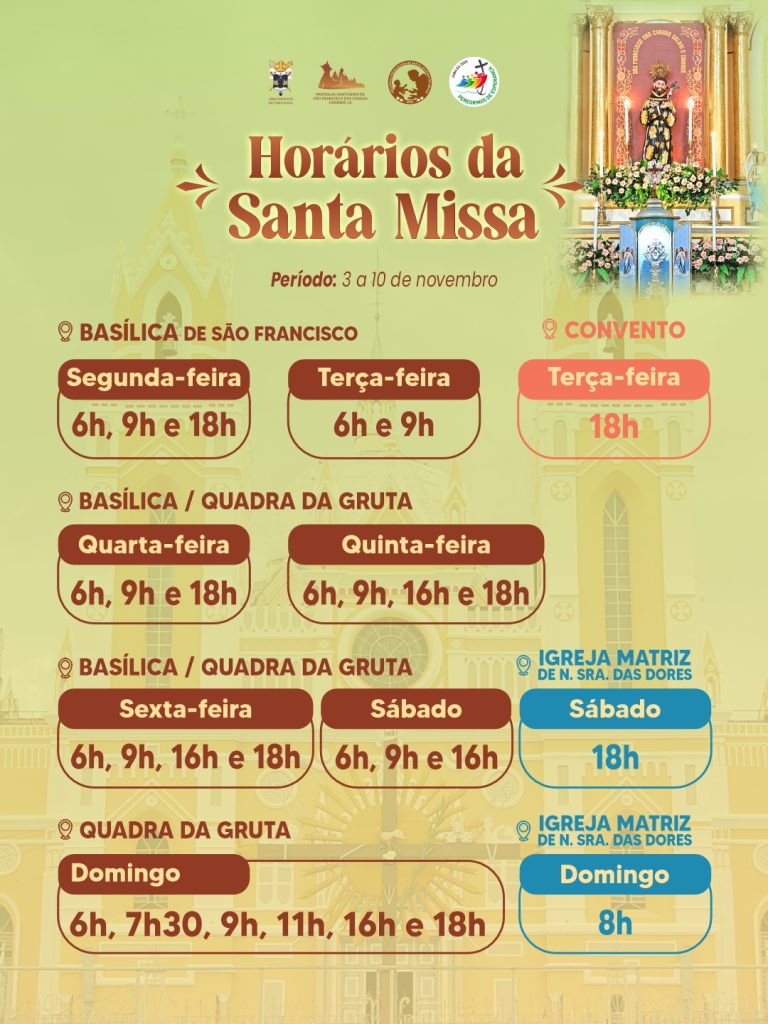 Dia 4 de cada mês: Dia Votivo a São Francisco, Missa às 9h, no Santuário-Basílica
