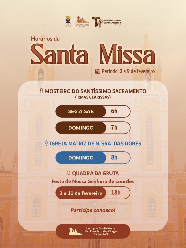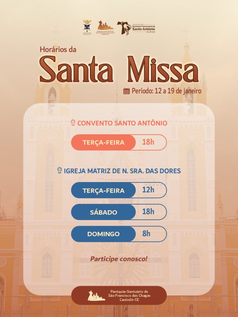 Dia 4 de cada mês: Dia Votivo a São Francisco, Missa às 9h, no Santuário-Basílica